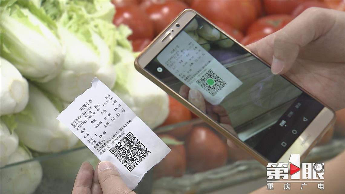 第1眼記者注意到,在農貿市場(chǎng)的每一筆交易,消費者都可獲得具有追溯代碼的小票,掃描二維碼,就能獲取所購農產(chǎn)品的供應商及其資質(zhì)證明等信息。